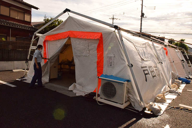 <新型コロナ>入院先決定までの待機ステーション、戸田市が開設 救急車に限界 市内どこでも5分で到着可 2021/08/23/00:00 消防本部に設置された入院待機ステーションのテント=19日、戸田市新曽 入院待機ステーションのテント内部。大型ベッドが二つ並ぶ=19日、戸田市消防本部 この写真の記事に戻る