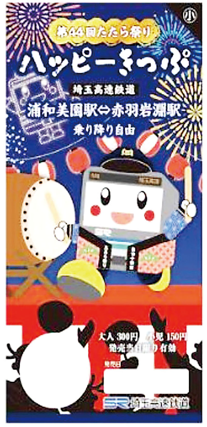 埼玉高速鉄道は今月24、25日に川口市青木の川口オートレース場で行われる第44回たたら祭りに合わせ、埼玉スタジアム線全線が1日乗り放題となる乗車券「たたら祭りハッピーきっぷ」を発売する。
