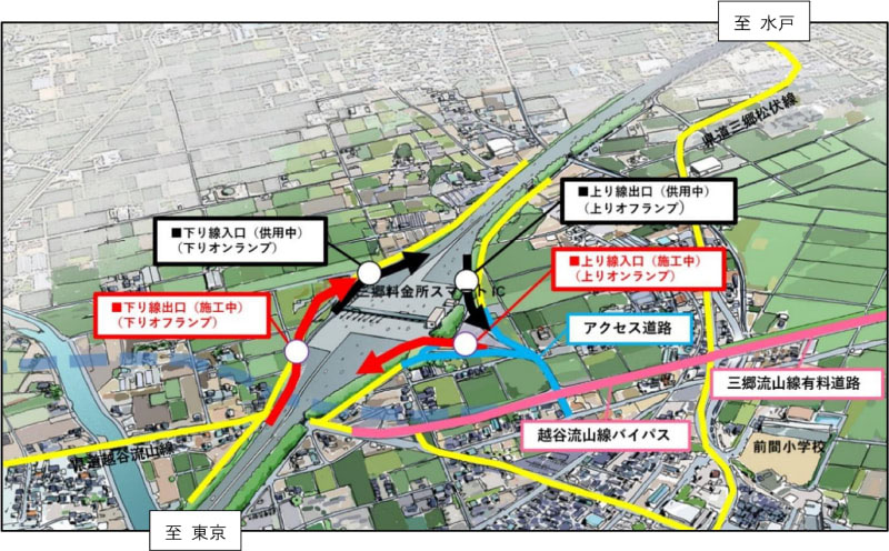 三郷市とネクスコ東日本関東支社は27日、同市小谷堀の常磐自動車道三郷料金所スマートインターチェンジ(IC)の「上り線入り口」と「下り線出口」について、本年度内に開通する見通しを発表した。