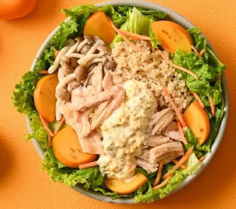 「自家製チキン南蛮と柿のサラダ」のサラダボウル