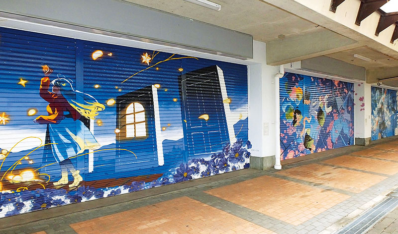 「団地の生活に彩りを」 1年かけてシャッターアート 手がけたのは20歳の学生イラストレーター 久喜のわし宮団地商店街 作品きっかけに新規に飲食店オープンも決定