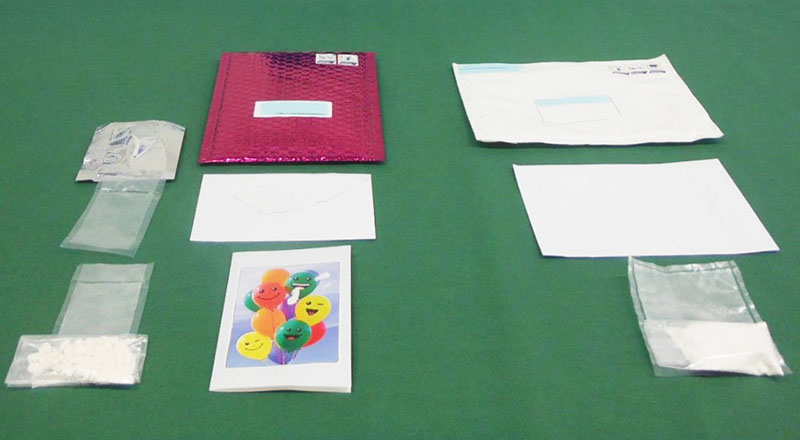 押収されたコカインと覚醒剤(県警提供)