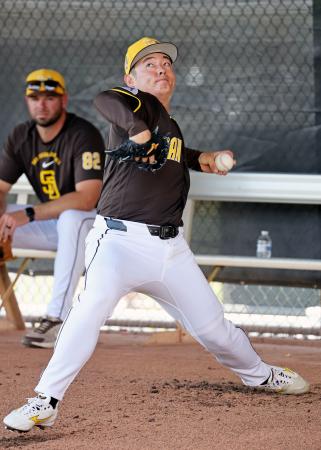 パドレス松井が投球練習 WBC辞退、回復は順調