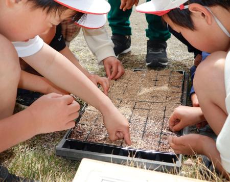 御巣鷹慰霊に向け児童らが種まき 群馬・上野村、日航機事故41年