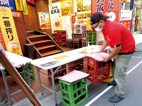 <新型コロナ>大宮区・南銀座で路上にテラス席設置 3密避ける安全な空間、新たなにぎわい創出を