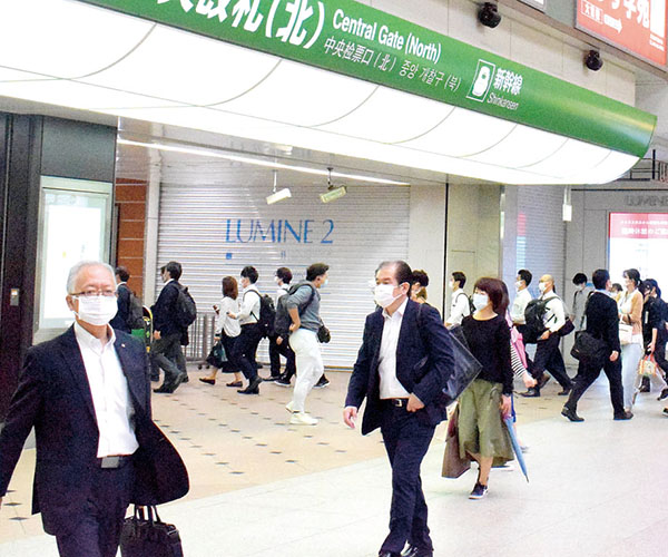 <新型コロナ>JR大宮駅、マスク姿の通勤客ら行き交う 緊急事態宣言が解除…除菌グッズ身に着け警戒