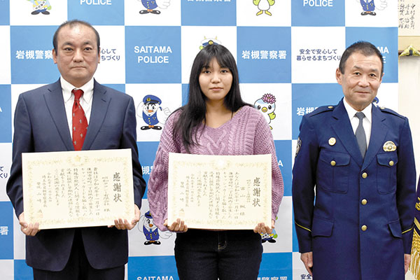 倒れた女性、国道4号バイパスに 女子大生ら3人、協力して歩道に女性移動させる 草加署が感謝状