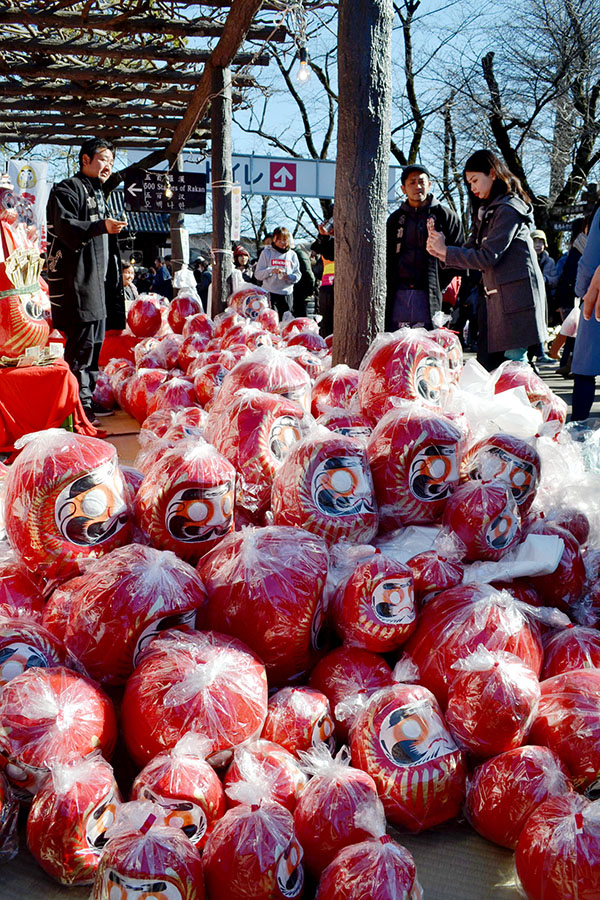 家内安全や学業成就、縁起物のだるまに祈り 川越・喜多院でだるま市、イノシシをモチーフにしただるまも
