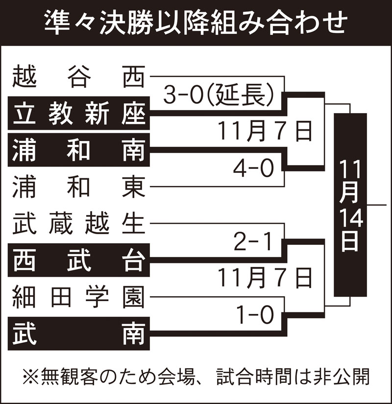 サッカーの第100回全国高校選手権埼玉大会(埼玉新聞社など後援)は7日に準決勝を行い、立教新座―浦和南、西武台―武南が対戦する(無観客のため、会場と試合時間は非公開)。14日に行われる決勝の切符を懸け、熱戦が期待される両カードの見どころを探った。