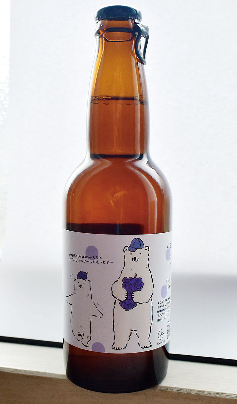 横瀬町の地域商社「ENgaWA(えんがわ)」と、秩父市下吉田の合同会社ベア・ミート・ビア秩父麦酒醸造所がコラボレーションした発泡酒「くまさんのまごぶどう」が、西武鉄道横瀬駅前のENgaWA駅前食堂で販売開始された。同町地域おこし協力隊員が栽培した巨峰の甘い香りとやわらかな酸味が、ホップの苦味と調和し、ビールのような、ワインのような味わいが楽しめる。