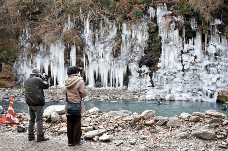 見頃を迎えている秩父地域の冬の風物詩「秩父三大氷柱」が、3季続けて集客に苦しんでいる。一昨年は暖冬で氷柱が造れず、昨年と今年は新型コロナウイルス感染拡大の影響で自粛開催を余儀なくされた。今年は厳しい寒さの下、秩父市の「三十槌(みそつち)の氷柱」、横瀬町の「あしがくぼの氷柱」、小鹿野町の「尾ノ内氷柱」の3会場とも、厚みのある、美しい氷柱が出来上がった。関係者は「みんなに見に来てもらいたが、コロナ禍で積極的に呼び掛けるのは難しい」と、頭を抱えている。