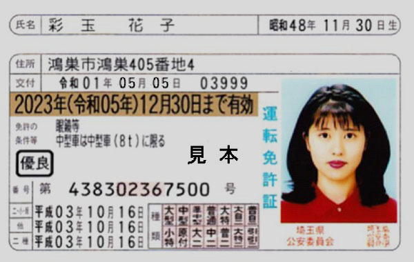 また、1日の改元以降に交付される免許証には新元号「令和」が表示される。休みの関係で、県内では5日に県警運転免許センター(鴻巣市)の日曜窓口で最も早く手にできる。更新は誕生日の1カ月前から1カ月後までとなっており、この期間が5日にかかっていれば、当日申請すると「令和」の表示が入った免許証がいち早く交付される。