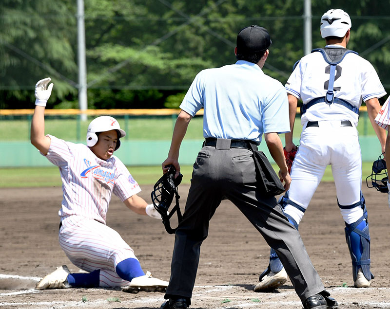 • 川越東―山村学園 3回裏山村学園2死満塁、酒井の中前適時打と敵失で一塁走者坪井が生還する。捕手白水