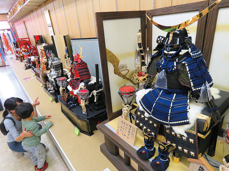 5日の端午の節句を前に越谷市の人形店で、男の子の健やかな成長を願う「越谷甲冑(かっちゅう)」の販売商戦が活気を帯びている。