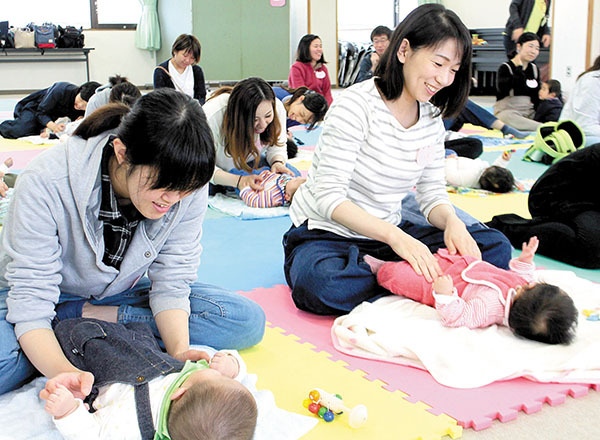 保育士と助産師のいる赤ちゃん広場「くまっこサロン」が熊谷市大原の母子健康センターで開かれ、19組の親子が参加した。