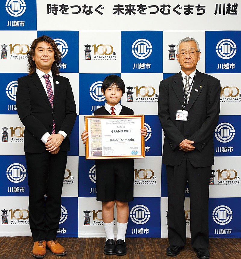 川越市立川越小学校5年生の山田凛仁(りひと)さん(11)が3日、川越市元町の同市役所を訪れ、川合善明市長に国際ピアノコンクール2大会の1位を報告した。山田さんは「ショパンコンクールで1位になるのが目標」と、日本人初の快挙を夢見ている。