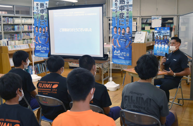 日本一暑いまちとして知られる熊谷市は、大塚製薬大宮支店や同市に本拠地を置く埼玉パナソニックワイルドナイツとの協働事業として、ラグビーを絡めた健康事業を行っている。熱中症対策アドバイザーの資格を持つ選手が中学生に熱中症対策授業を実施。暑さ対策事業でも、選手が体を暑さに慣れさせる暑熱順化に取り組む「熊谷ラグササイズ動画」を紹介している。