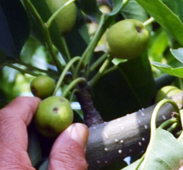 今月4日、県内で降ったひょうはナシ農家を直撃した。特産地の久喜市では、市内のナシ畑約10ヘクタールで果実に傷が付くなどして、県内で最も大きな被害が出た。降ひょう被害を受けたナシ農家は「傷が付いたり、変形した果実は商品にならない。被害はさらに増える」とため息交じりに話した。