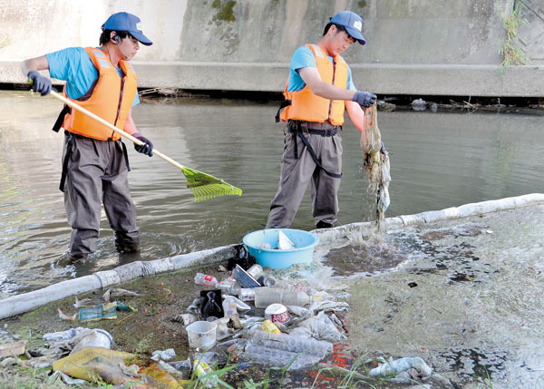 住民らは新河岸川沿い約500メートル区間で、ごみ拾いもした。城下・氷川町自治会の村田一男自治会長(75)は「すぐ上流部にせきがあるのに、これだけのごみが回収されるということは、投棄する人が絶えないということ」。星野高校社会福祉部3年の佐藤歩美部長(17)は「きょうの活動で海洋汚染に対する意識が高まった」と話していた。