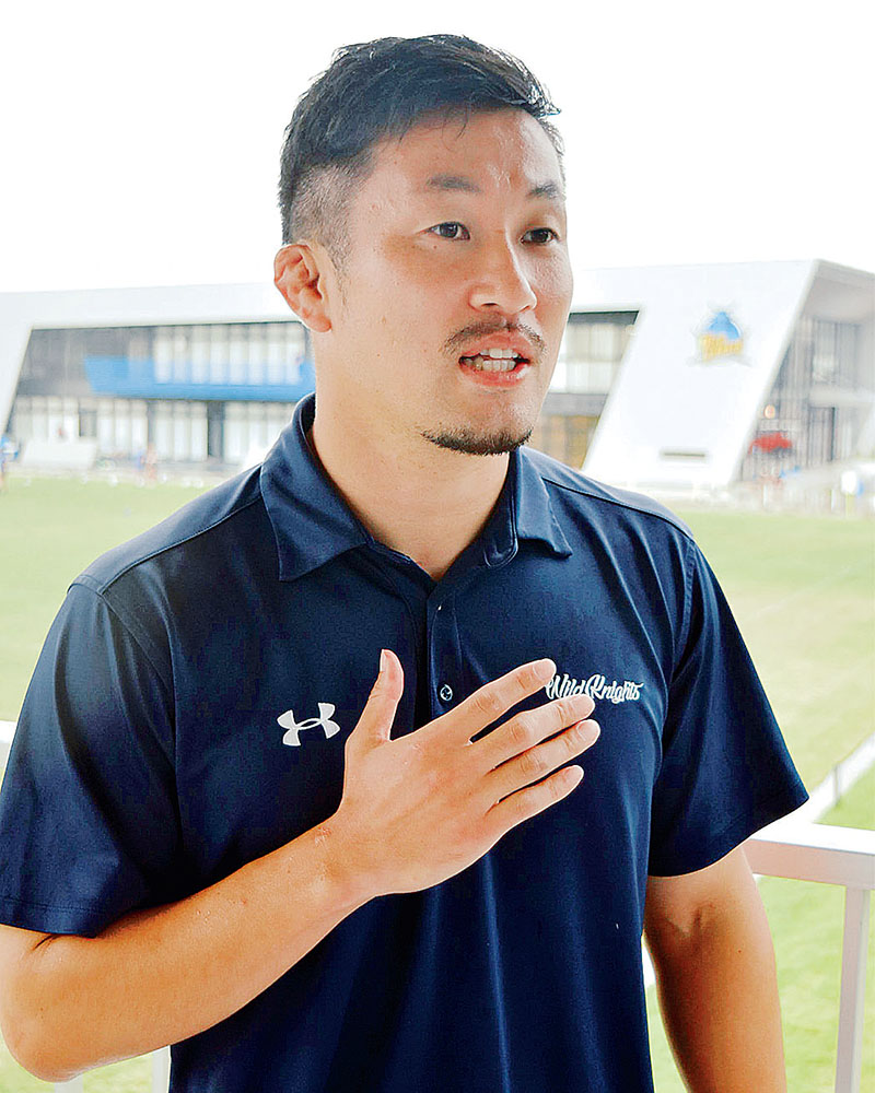 熊谷市上川上の熊谷スポーツ文化公園にあるさくらオーバルフォート。ラグビーリーグワンの埼玉パナソニックワイルドナイツのクラブハウスでパソコンに向かっている渉外・広報担当の酒井教全(たかまさ)さん(34)の姿があった。「中学で少し怖かった先輩に誘われてラグビーを始めたが、まさか自分がこんな仕事をしているとは思わなかった」と半生を振り返った。