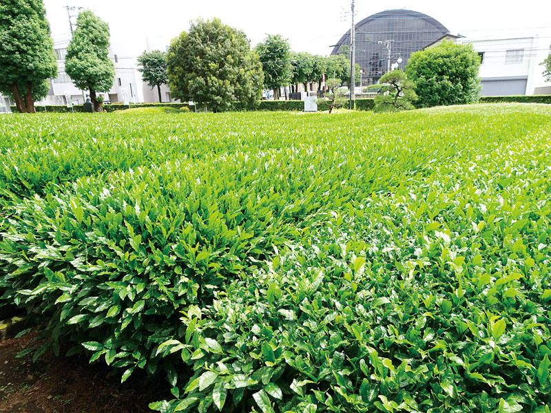 入間市役所敷地内にある狭山茶の茶畑=5月
