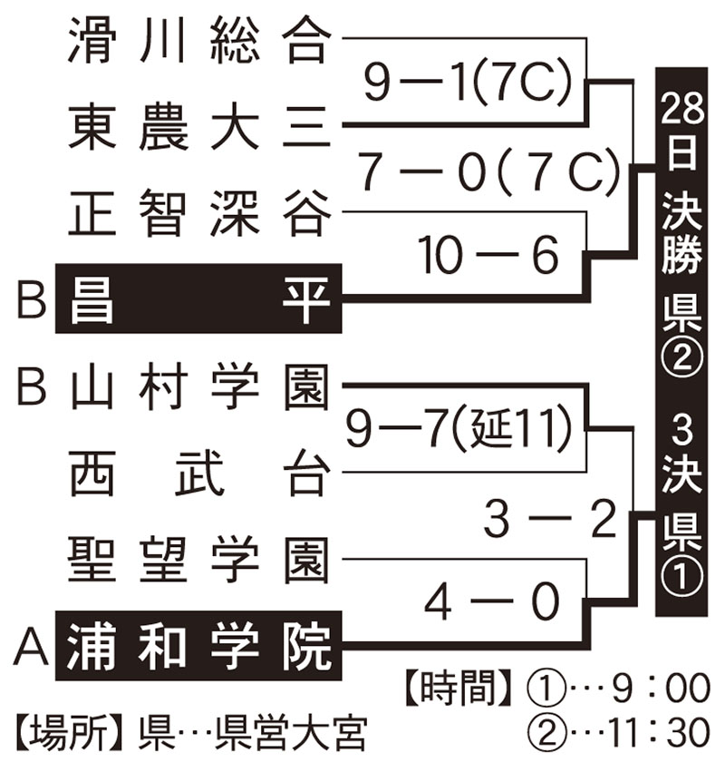 秋季県高校野球大会は28日、県営大宮で3位決定戦の東農大三―山村学園(9時)と、決勝の昌平―浦和学院(11時30分)が行われ、秋の県王者と関東大会に出場する残りの1校が決まる。Bシードから勝ち上がってきた昌平が2年ぶり2度目の王者に返り咲くか、昨秋覇者でAシードの浦和学院が2年連続17度目の頂点に立つのか。秋の決勝で初めて顔を合わせる両校の見どころを展望した。