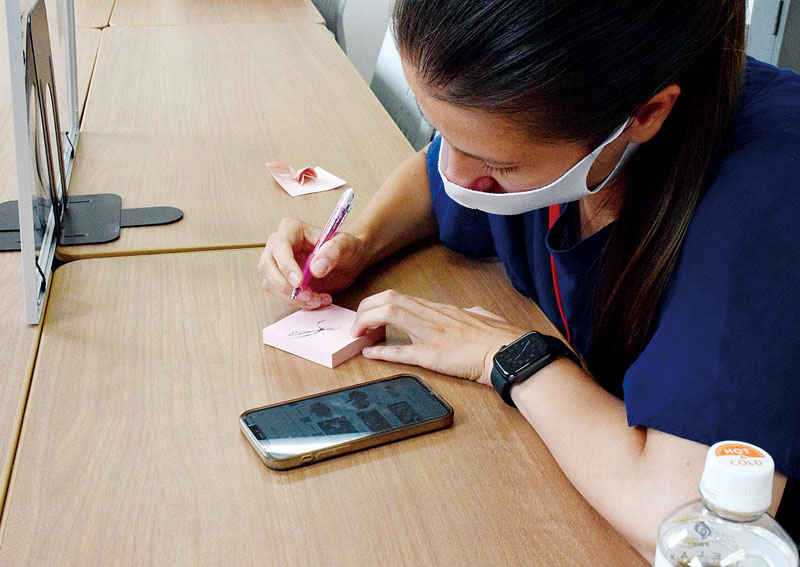 戸田市国際交流協会でウクライナ人女性、アナスタシアさん(30)が避難民の支援活動担当者として働いている。ロシアのウクライナ侵攻という事態を受けて同協会に迎えられた。そのアナスタシアさんが、取材に訪れた記者に、小さな絵を描いてくれた。手元にあったピンクのメモ用紙に描かれたのは小さなカブだった。