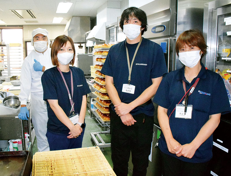 • パン工房で須藤所長(右)と武田さん(右から3人目)=蕨市のスマイラ松原