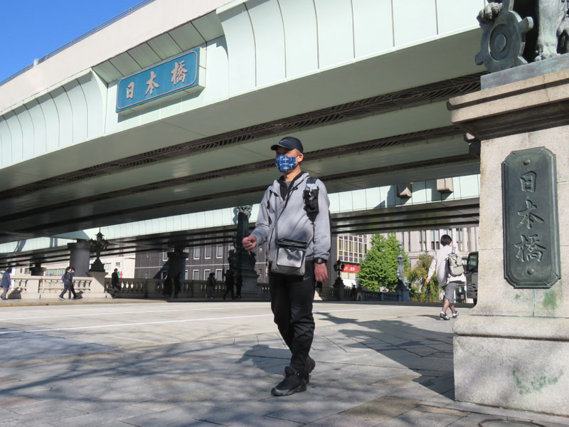 • スタート地点の日本橋を出発する和田義治さん=8日午前9時、東京都中央区