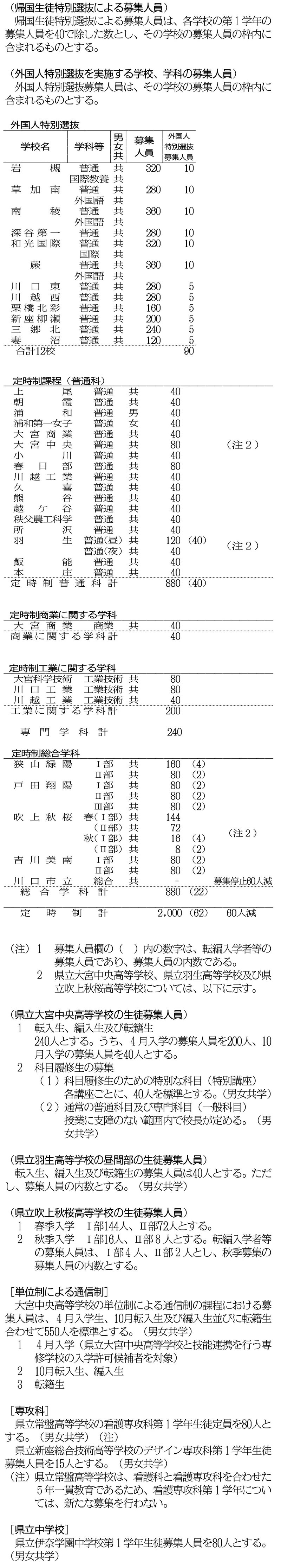埼玉県公立高…熊谷など12校が募集人員減 統合で6校が開校 全日制131校3万5080人を募集 前年度比400人減