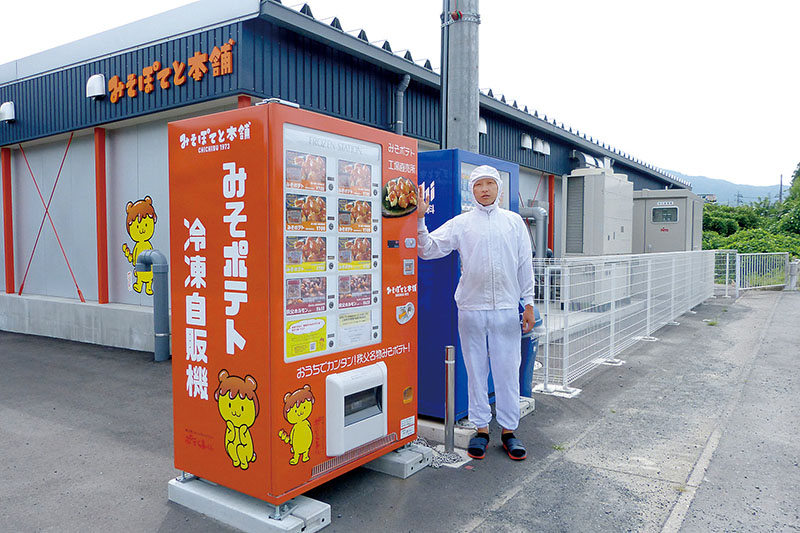 秩父の名物B級グルメ「みそポテト」を手軽に楽しんでもらおうと、みそぽてと本舗(秩父市栃谷)は、今月から工場敷地内に冷凍自動販売機を設置し、「冷凍みそポテト」の販売を開始した。同社の新井真社長(35)は「秩父グルメがいつでも購入できる、新たな観光スポットになれば」と期待を込める。