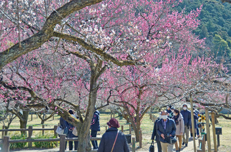 奥武蔵に早春を告げる「越生梅林梅まつり」が2月11日~3月19日、越生町堂山の越生梅林で開かれる。新型コロナウイルス感染拡大の影響で、過去2年はイベントを行わない縮小開催となったが、今年は感染防止策を講じながら、3年ぶりに例年通りの内容で実施される。