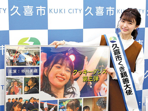 久喜市(梅田修一市長)は11日、PRビデオ「クッキーダンス第三弾」を公開した。主演にアイドルグループAKB48やNMB48で活躍し、「久喜市くき親善大使」を務めるタレントの市川美織さん(24)を起用している。