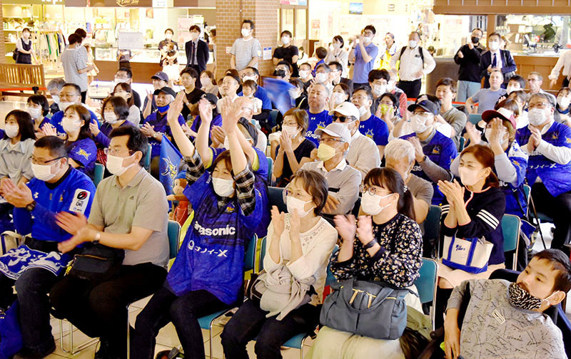 熊谷ニットーモールで「埼玉パナソニック」応援PV 立ち見も含め130人 5月13日に準決勝「今年も優勝して」