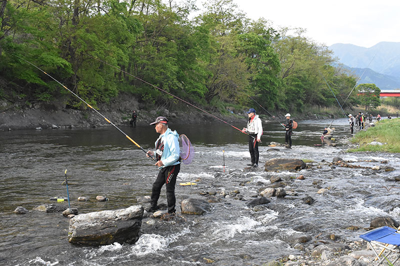 前日から場所取りをしていた東京都瑞穂町の曳地広幸さん(70)は「今年は昨年より釣り人が多いので、簡単には釣れそうにない」と話した。同福生市の金丸利夫さん(68)は「最低でも10匹は釣りたい」と意気込んだ。