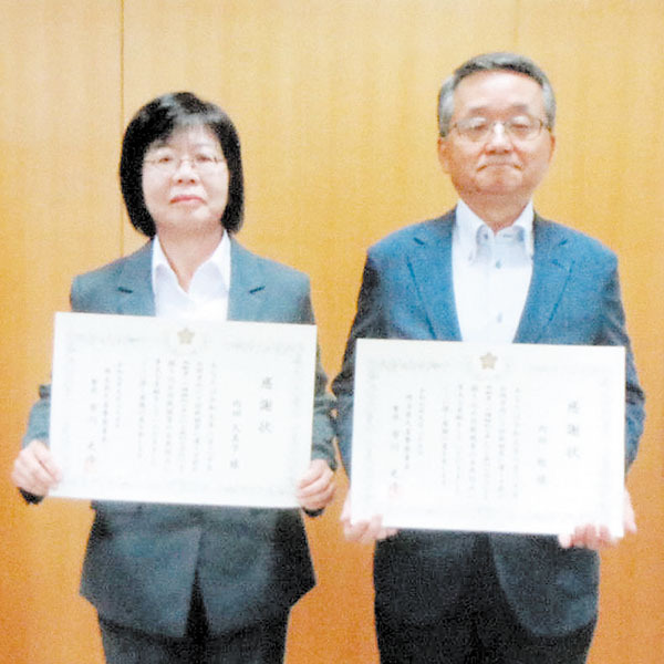 久喜署は振り込め詐欺を未然に防いだとして市川光浩署長から、蓮田市の内田稔さん、久美子さん夫妻に感謝状を贈呈した。