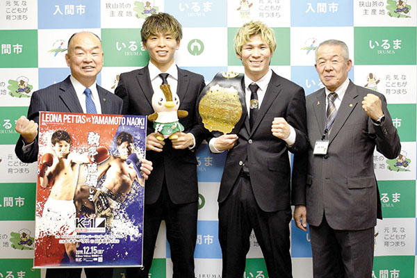 9月に行われた、K―1KRUSH後楽園大会で、スーパーフェザー級王者に輝いた入間市出身のレオナ・ぺタス(本名・加藤玲於奈)選手(27)らが、同市の田中龍夫市長を表敬訪問し、12月に行われる防衛戦への意気込みを語った。