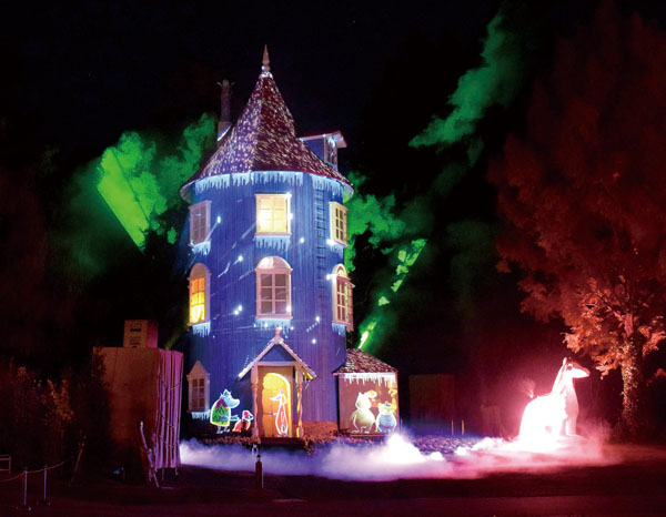 <イルミ>ムーミンバレーパークで幻想的 ムーミン屋敷に映像出現、最後にオーロラ 20年3月8日まで