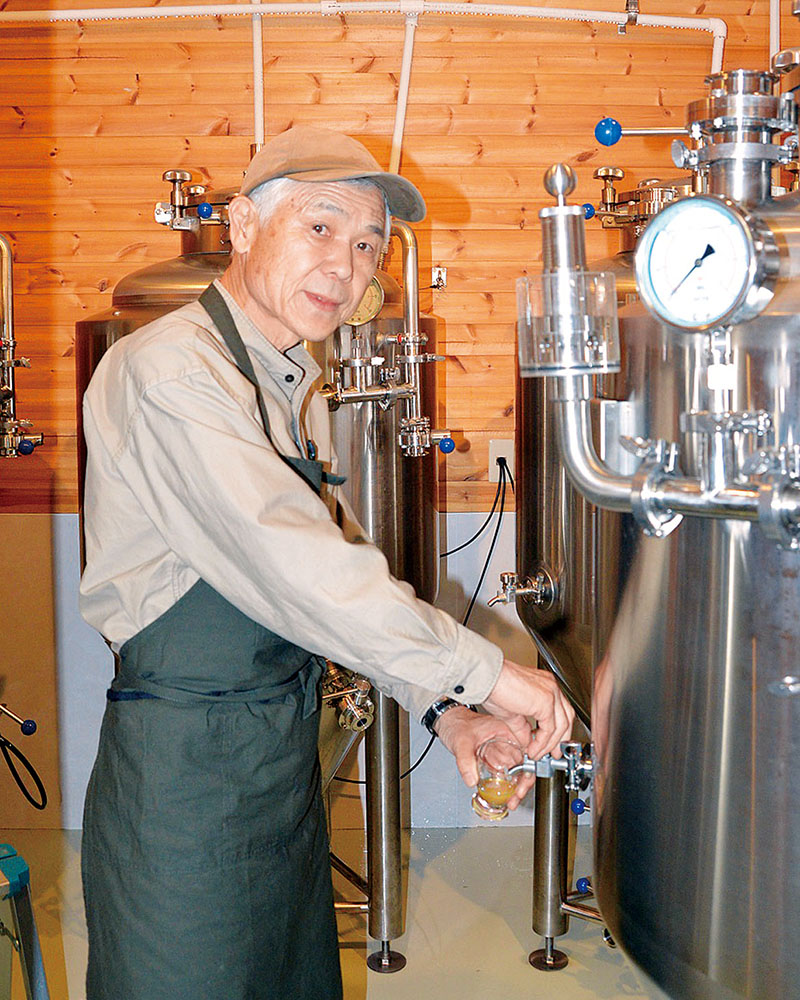 地元赤沼の赤米を使ったクラフトビールを製造、販売する赤沼ロマンビール代表筒野広康さん(71)。市内で初めて発泡酒の製造免許を取得。「赤沼ロマンビール」を提供する「マルコブルーイング」がこの春オープンした。「何百通りものスタイルがある。ローカルで喜ばれるまちづくりのビール。これが面白い」と目を細める。