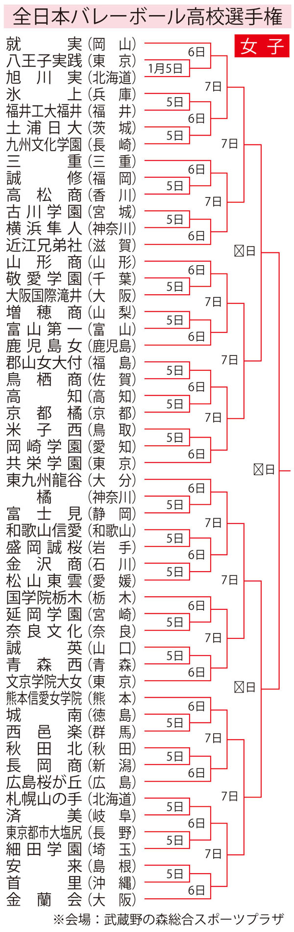 <全国高校バレー>女子・細田学園、5日長野・東京都市大塩尻戦 拾ってつなぐバレー強みに全国1勝目指す 2020/01/05/00:00 高校スポーツ 伝統の粘り強さに磨きをかけた女子の細田学園 全日本高校選手権・女子の組み合わせ “春高”の愛称で親しまれているバレーボールの全日本高校選手権は5日、調布市武蔵野の森総合スポーツプラザで男女各52校が参加して開幕し、12日の決勝まで5日間の熱戦が繰り広げられる。 もっと読む ツイート シェア シェア スポーツの記事一覧 埼玉新聞のHOMEに戻る