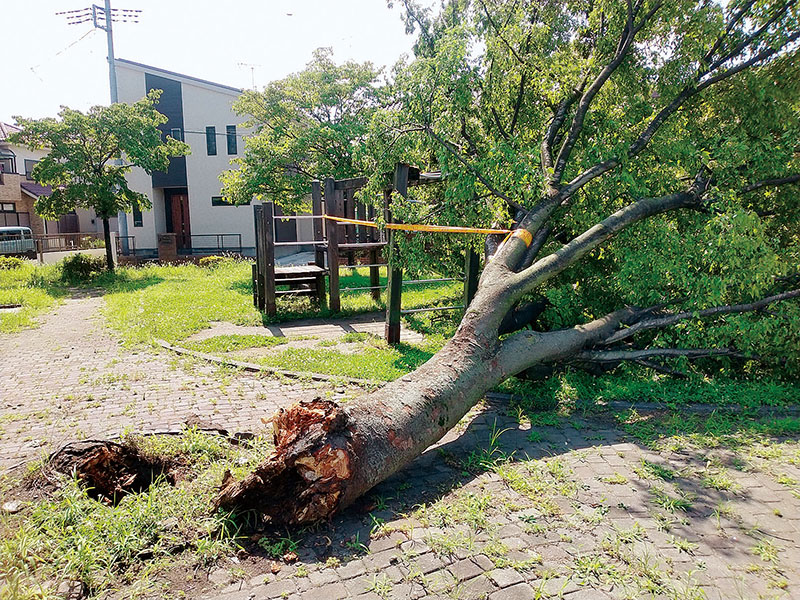 ものすごい突風、埼玉の国道2カ所で信号機の向き変わる 大木が根本から倒れ、トタン屋根が50メートル飛ぶ 2023/07/13/09:23 突風の影響で倒れた公園の大木=久喜市葛梅2丁目の芝間公園 この写真の記事に戻る