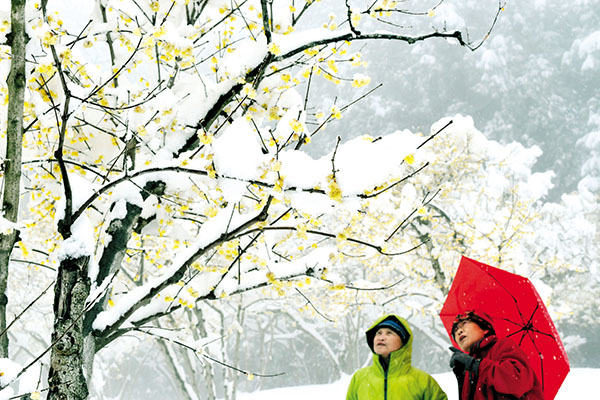 <積雪>見頃の宝登山ロウバイ園、一面が銀世界 敷地は1万5千平方メートル「圧巻で素晴らしい」