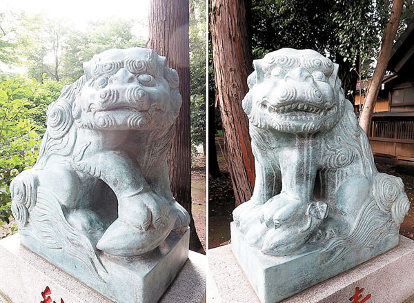 珍しい「サツマイモ抱えた狛犬」、所沢・神明社に 聖火台制作の鈴木文吾さん監修 市外から人々「見たい」