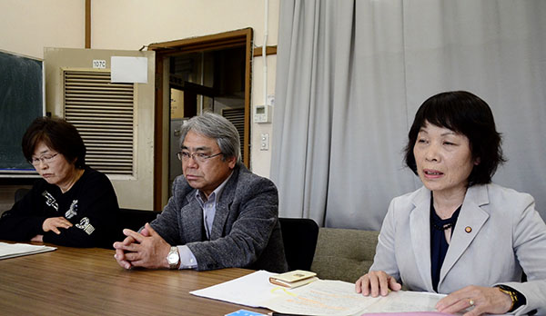 県教育委員会が本庄市の児玉高校と児玉白楊高校を統合する方針を示していることについて、計画の見直しを求める「二つの高校の統廃合の慎重かつ十分な検討を求める有志の会」共同代表の沖村良子さん(69)、浜田敏夫さん(68)らは13日、県庁を訪問し異議を伝えた。