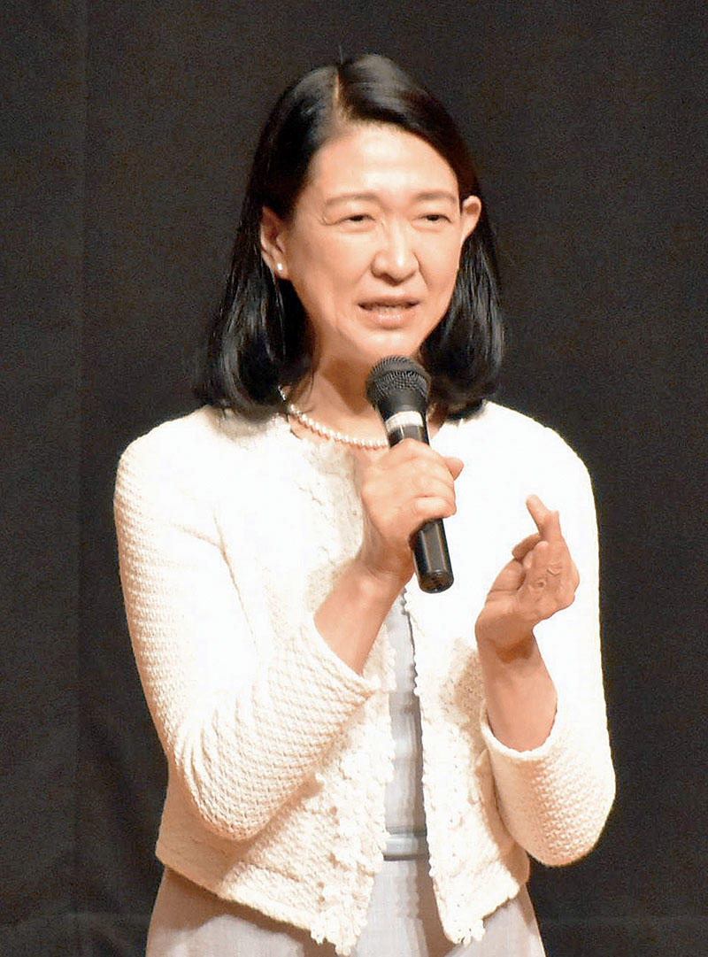 埼玉県行田市の忍郷友会は7月30日、読書推進実行委員会第20回特別記念講演会を同市佐間の市教育文化センター「みらい」で開催し、俳優で朗読座主宰の紺野美沙子さん(62)が講演と朗読を行った。紺野さんは「読書は想像力が豊かになる。他者を思いやる力がつき、人の痛みも分かるようになる」と読書の魅力を語った。
