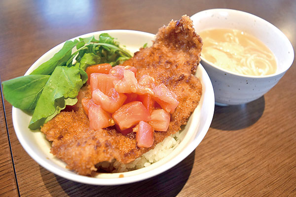 お薦めは「わじかつフレッシュトマトソース+ミニうどんセット」(1480円)。わらじかつは丼から飛び出すほどのわらじ大のかつが入る秩父名物で、同ワイナリーの赤ワインとバルサミコ酢を使用したタレで味付けした。オリーブオイルに漬け込んだフレッシュトマトも添え、名物をイタリア風に仕上げた。