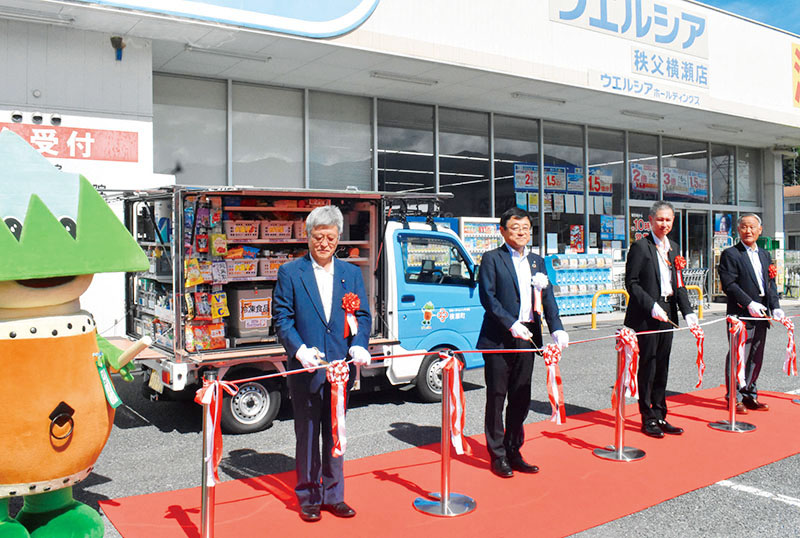 横瀬町とウエルシア薬局(東京都千代田区)は、今月から移動販売車両「うえたん号」の運行を開始した。平日週5回、町内計45カ所を定期巡回し、移動が困難な高齢者、障害者、子育て世代らに、買い物や交流機会を増やす。車両には生活必需品約550品目のほか、薬剤師らとのオンライン健康相談が行えるモニターや、キャッシュレス決済機能を搭載。高齢者の見守り活動にもつなげていく。