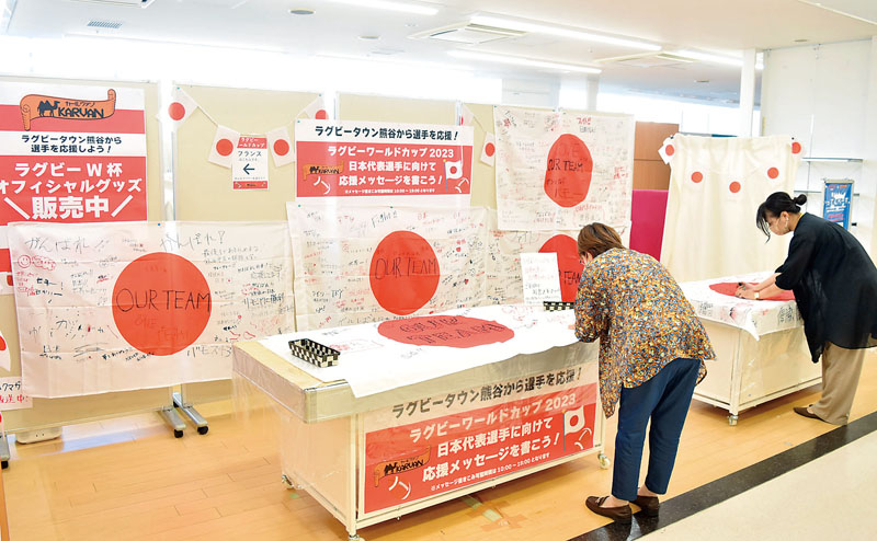 ラグビーワールドカップ(W杯)フランス大会に合わせ、ラグビータウンとして知られる埼玉県熊谷市が盛り上がりを見せている。商業施設に日本代表グッズが販売され、応援メッセージコーナーも好評。ラグビーは2019年の日本大会で人気が高まったが、新型コロナウイルスの影響を受けた。関係者たちは再びラグビーブームの到来を期待している。