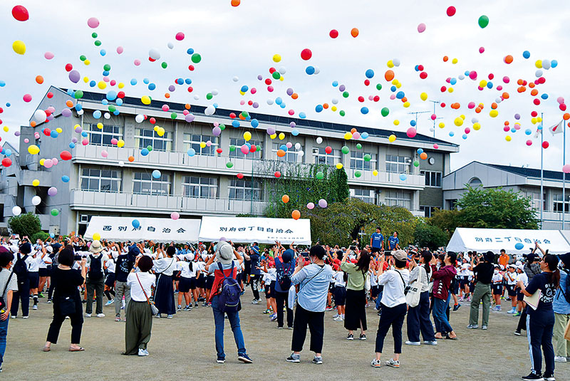 埼玉県熊谷市立別府小学校(安藤咲恵校長、児童数489人)で9月30日に創立150周年を記念した式典と運動会が行われ、全校児童や来賓などが風船を飛ばす「バルーンリリース」を実施した。
