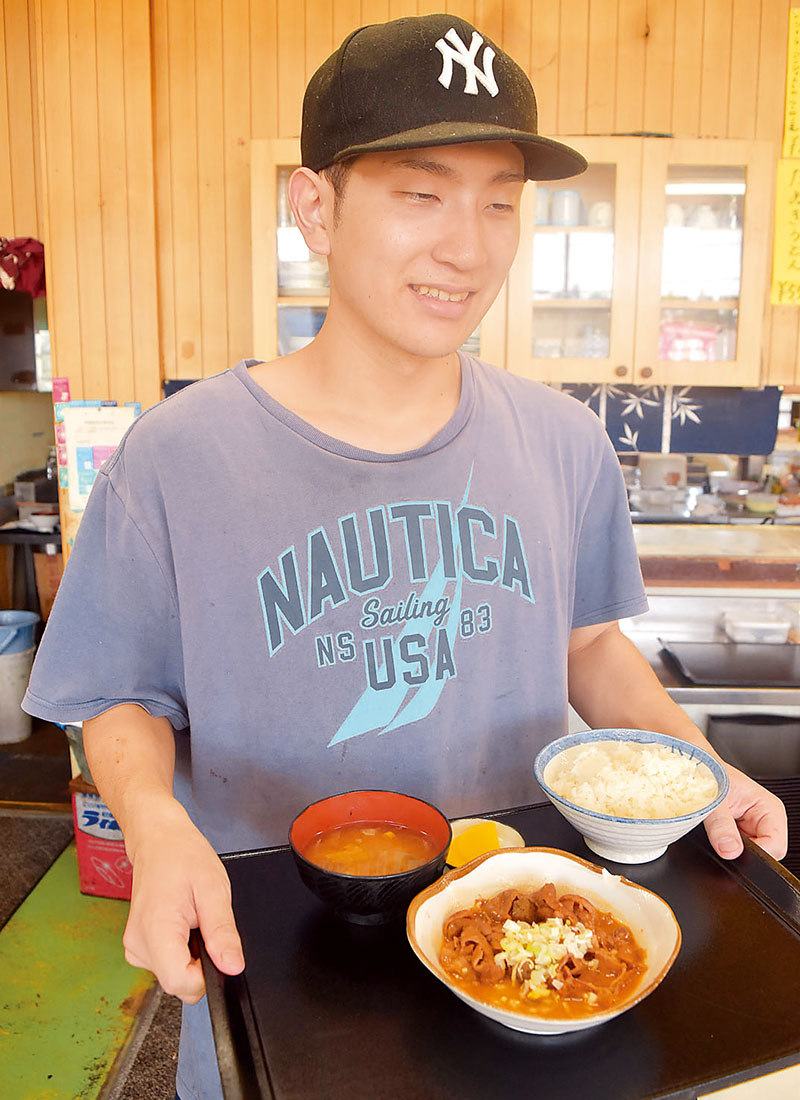 埼玉県熊谷市佐谷田の県道128号沿いにある「大衆食堂 百万石」。名物は「もつ煮定食」(730円)で、遠方から通うファンも多い。看板には「世界一のもつ煮」と記され、強いこだわりを持っている。同店の若き後継者となる加賀崎翔也さん(24)は「受け継がれてきた伝統の味を守っていきたい」と意気込む。